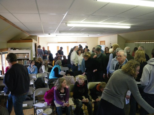 is our Town Meeting day in the Town of Cranberry Isles. We started at 8:30 this morning and finished by 3:30 with a one hour break for lunch. By the end of the day, voters passed a town budget of $1,726,008. Our town is made up of five islands, but only two are inhabited year round: Great Cranberry and Little Cranberry, also known as Islesford. You can see there are not a lot of roads on the islands, but there was a lot of roadwork improvement discussed.