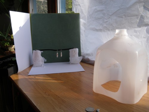 Before the three days of rain, I had a chance to use my favorite photography studio: the dining room window. Favorite studio accessories: white tissue paper, sun, and a stick.