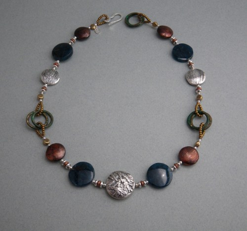 Don’t you just love these patina-ted copper components made by Shannon LeVart of Miss Ficklemedia? Her Etsy site is one of my favorite places to shop for beads.