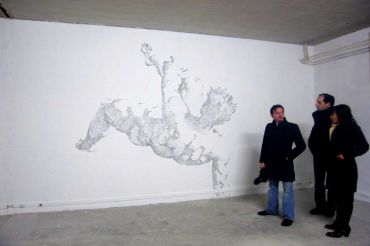 Yeah, I wish I could have snagged larger photos to post. I wonder if he used the same stapler, or went through several. Also wonder what that wall is made of?