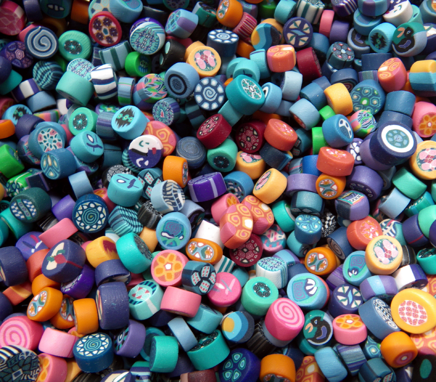 …I made many, many beads from polymer clay. And I have many, many still on hand. Sometimes they call to me from high on a shelf in my studio, “Remember us? Don’t you want to play with us again?”