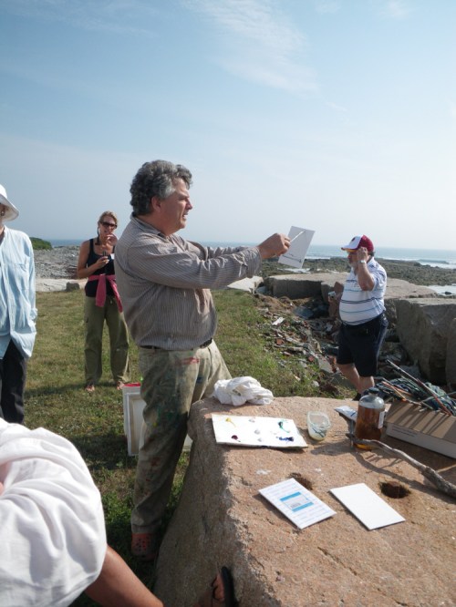 Friday, pre-hurricane, we painted at Frank and Kim Newlin’s house. Photo journalist, Richard Hill, took many shots of the class. Click here to check them out. The weather started to get windy so we regrouped at the dock after a picnic lunch.