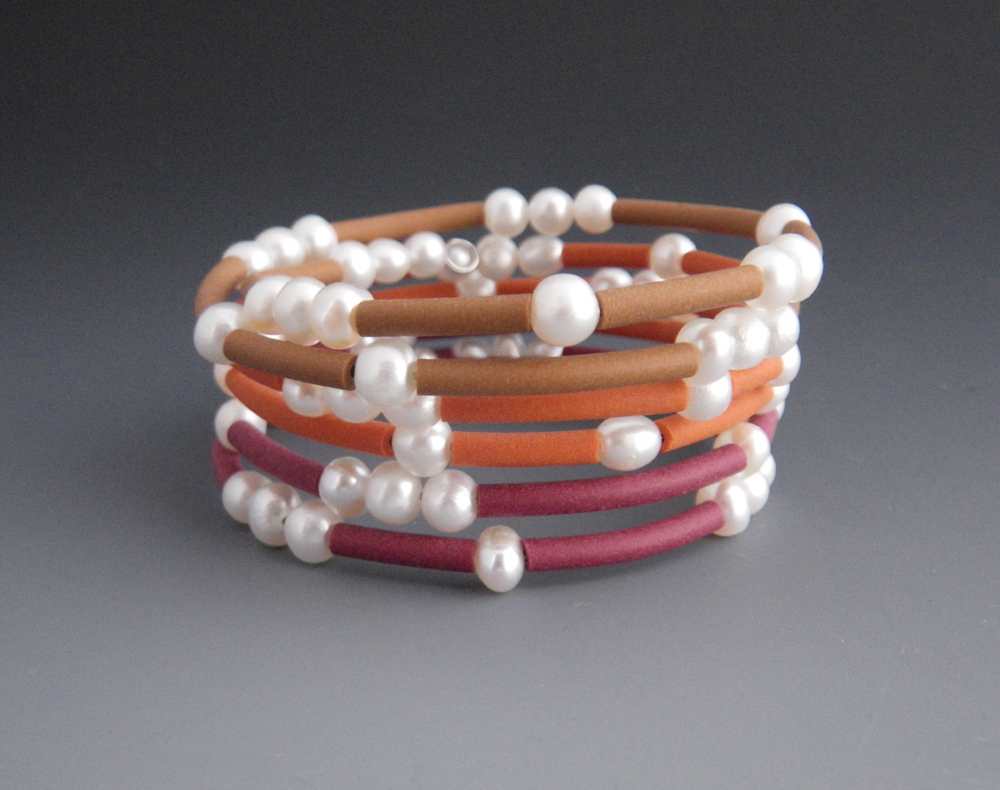 The other event next week is the trunk show at the home of my friend Val in Greenwich, CT, on November 13. After setting up to try to capture the Ubuntu necklace, I took a few shots of some pieces I’ll have with me at the show. The bracelets below, made of rubber and fresh water pearls were a breeze to photograph. I got what I wanted in one shot, whereas I took about 40 different shiny bead necklace shots and still did not get what I wanted. (Yes, this winter I will have some professional photos taken and I know just the photographer I would like to work with!)
