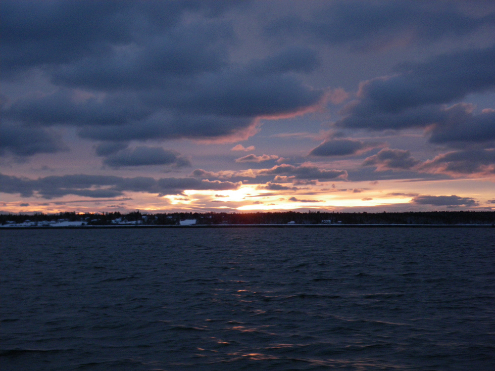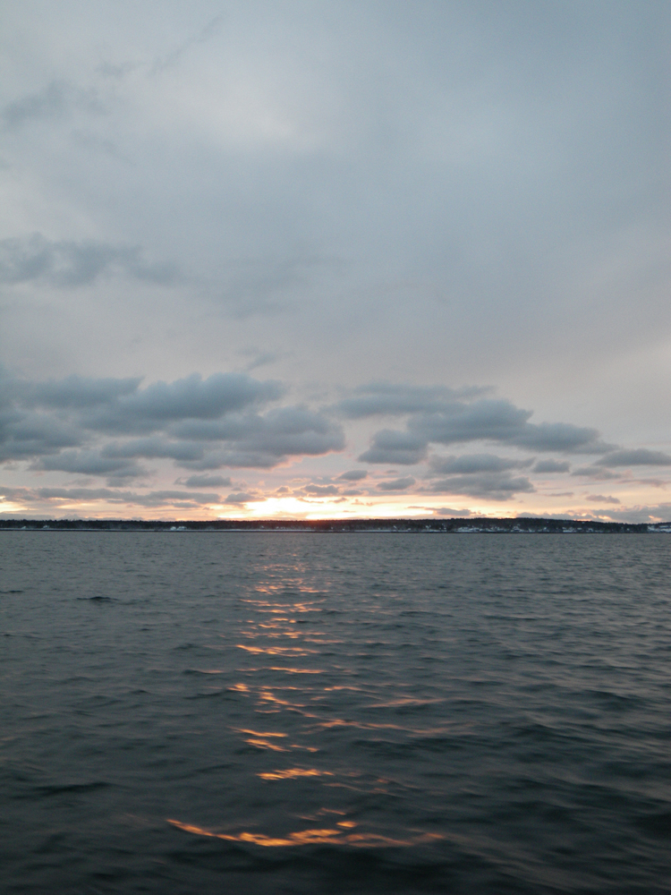 I love this time of year. Not that I could take it for a long time, but the short dark days really appeal to me. To see candles in windows, Christmas lights on houses, all the bits of light that people use to enhance the long nights. I don’t mind having the sun set before 4 p.m. It means a ride home on the 3:30 mailboat is likely to be accompanied by some spectacular sky.