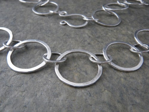 …was to make and fuse my own fine silver and Argentium silver links. (Argentium is especially useful because of the strength it provides as an alloy.) I had a lot of practice in perfecting my technique when I made large link silver necklaces for Robin’s fiancee and Fritz’s girlfriend,  Stephanie and Meg, for Christmas presents.