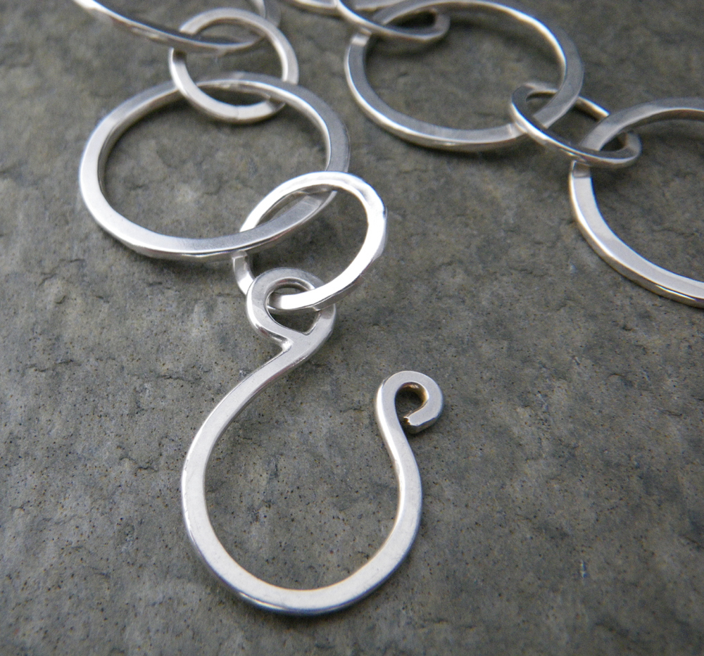 Once they are all fused and assembled, I hammer the links to work-harden them. These were made with 14 gauge Argentium. This technique is so handy for anytime I need a closed jump ring, or even a closed loop on a hook clasp. No solder to mess with either. It took a little practice to gain confidence, but I am glad I persevered. It was well worth it.