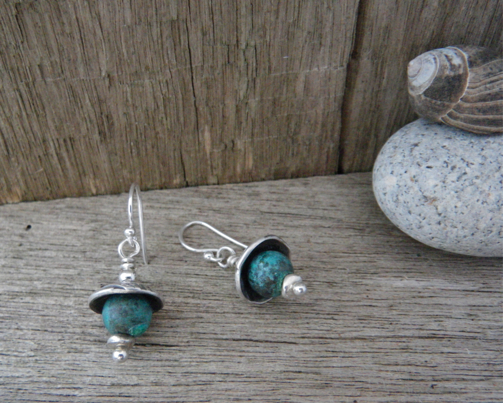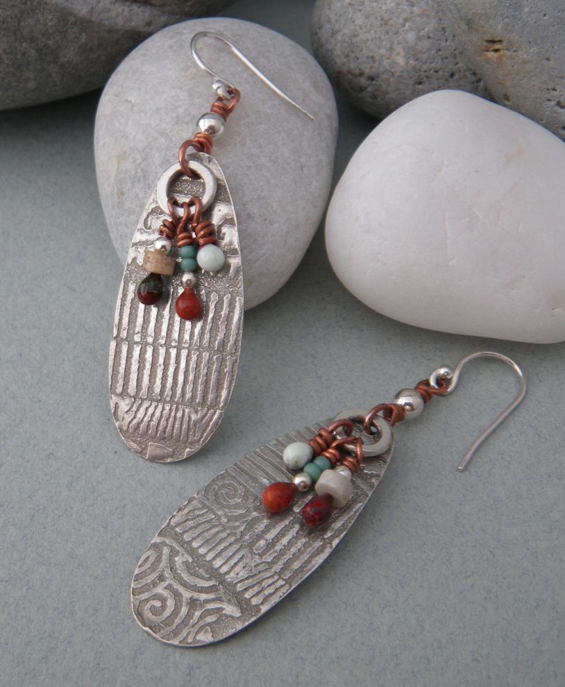 By the way, the cool patinated copper beads in this pair of earrings came from Miss Ficklemedia. One of my favorite Etsy shops for beads and components.