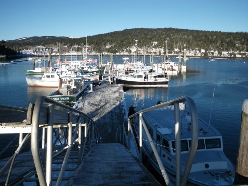 On a totally different subject: Sometimes the tide is high when you come home on the 3:30 mail boat, and sometimes, like today, it is dead low. The ramp is steep, and you need both hands to hang on when going down to get on the boat. Not the time to try to carry several bags of groceries, all at once, on the way down.