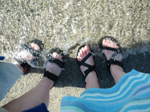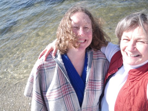 Below is an “after dip” photo. We could never stand in the 39º water like this and then decide it was a good idea to dip. You have to run in and get horizontal before you even feel the water. It’s the only way to get into the Atlantic, in Maine, every month.