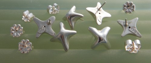 I’ll finish the beads tomorrow. Buffing some on the wheel and hand finishing others. Then on to some long awaited necklace stringing. This morning I hand finished these post earrings, made from slump beads with a flat back.