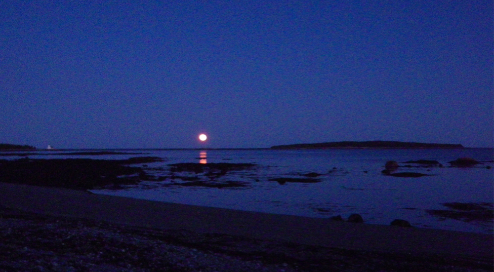 Saturday was a beautiful day and a bunch of us geared up to watch the rise of the “super moon” around 7 p.m. The sun was just setting as we walked to a beach facing southeast. At one point we wondered if we might be in the wrong spot to watch the moon come up out of the water, afraid that the moon would rise too far to the east from where we were standing. Moments later a bright orange line appeared on the horizon. We were in a perfect spot. It just stuns me, in the best way, to imagine so many people doing the same thing at the same time, yet not in the same place.