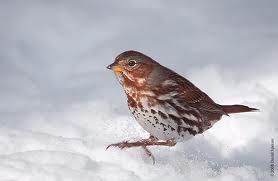 I love these jumpy little birds. They are easy to identify from other sparrows because they are slightly bigger. They are fun to watch and their song is a delight to hear. (Click here for a link to hear it. Scroll down to “typical voice” on the left.) They are not around for long as they are just passing through on their trip north to Canada. Even when it snows, they are a definite sign of spring.