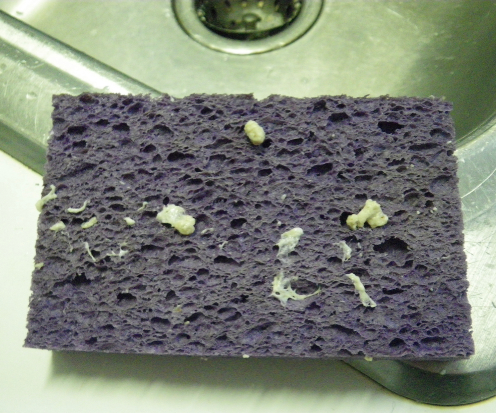 There is one thing I used to hate about making bread until I learned one of the best little tricks ever. When it comes to wiping up flour from the counter, my sponges used to get like this: