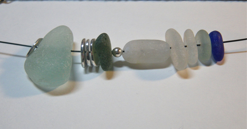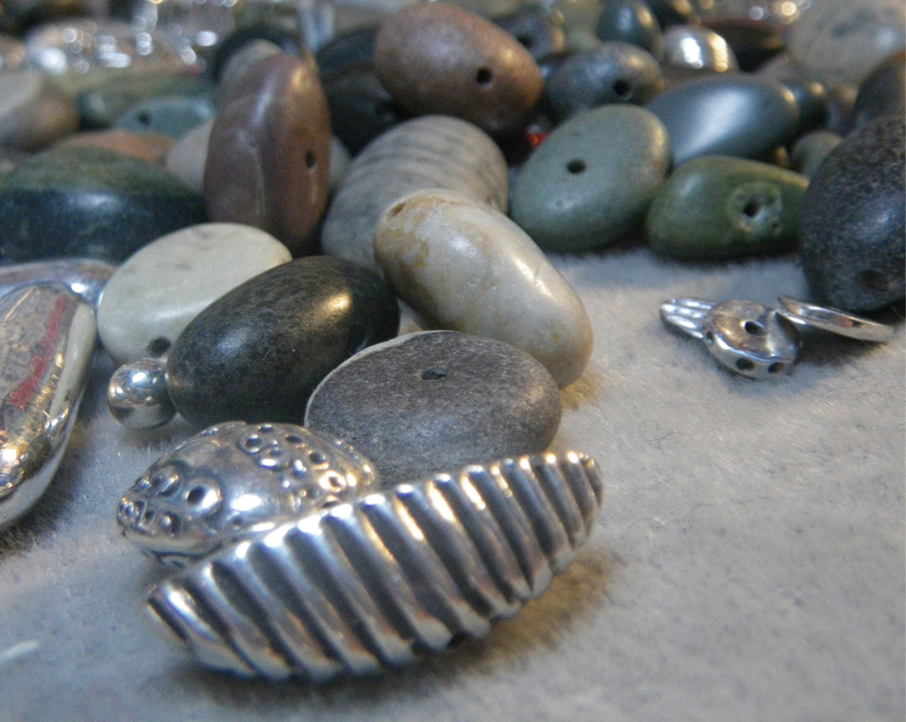 Beginning a beach rock necklace with some PMC beads.