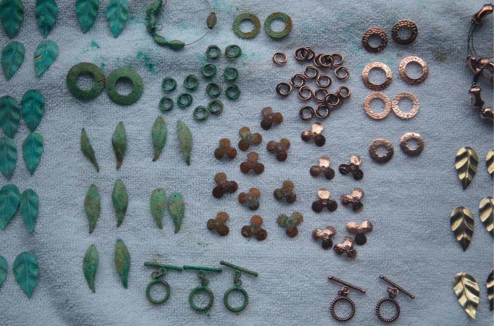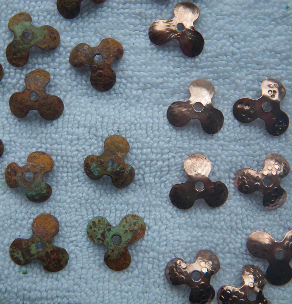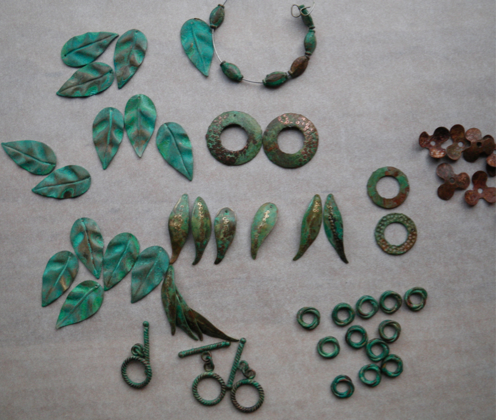 My first foray into the world of patina (excluding the use of liver of sulphur on silver, and a few times using Baldwin’s Patina on some copper/bronze clay pieces) went pretty well. I started with the verdigris because it is a cold patina and it seemed like the simplest place to start.