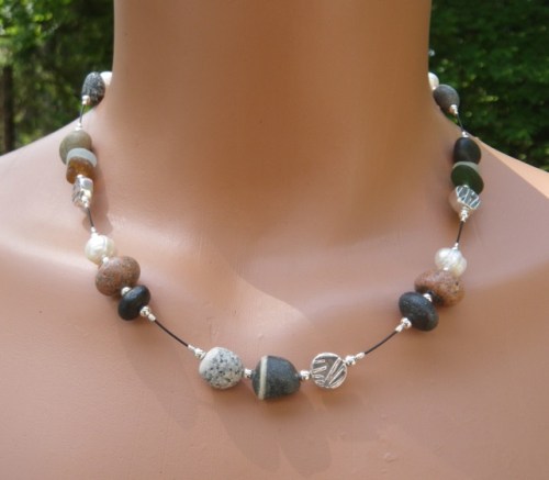 I especially like how her etched (frosted) clear glass beads combine with the German lampworked beads I recently purchased from Beadin’ Path in Freeport, Maine.