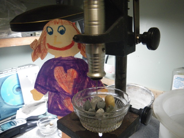 Of course, the first thing I showed Stella, yesterday, was where I drill my rocks.