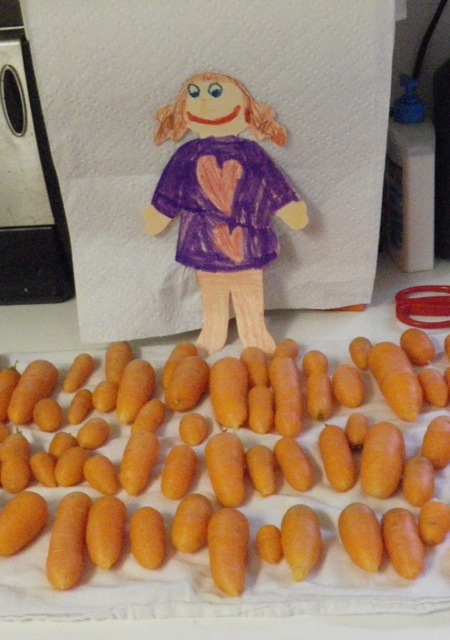 Some of the small carrots were a little rubbery. I guess they had frozen and thawed a few times. But a surprising number of them were still very good. Stella was impressed.