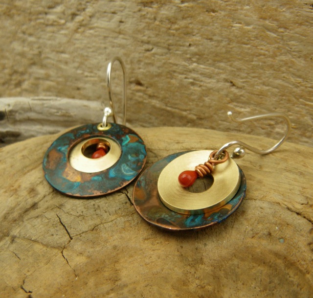 I love seeing my own patina’d pieces mixed with other metals, but it’s one of those techniques I often put off. It’s as though I don’t want to have to go through the extra waiting time to develop the patina, then seal it, then wax it. My procrastination only serves to delay my gratification further. Oy! I really am my own worst enemy.