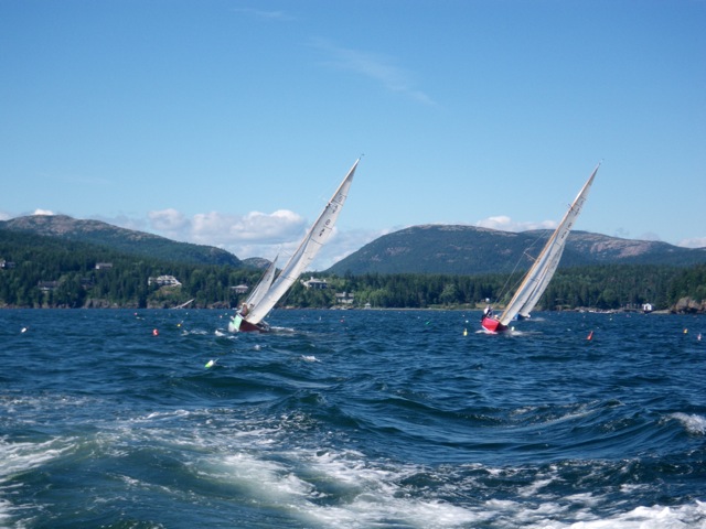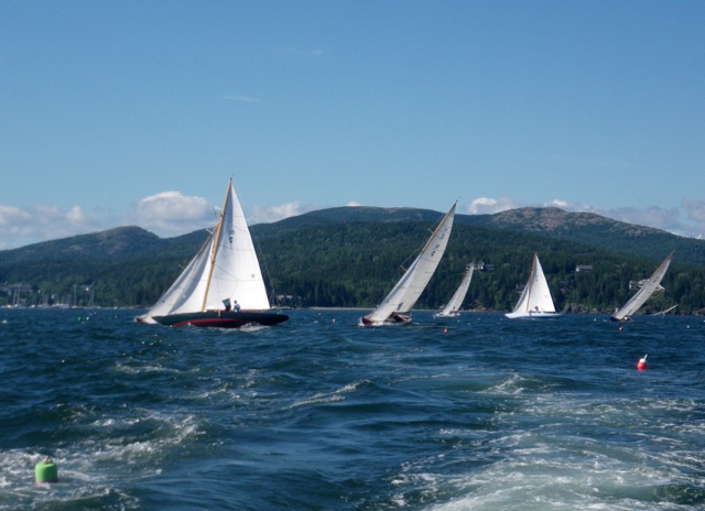 A gray morning turned into a spectacular afternoon and my usual boat ride home went right through the middle of a race of International One Design sailboats. Not such a bad commute.