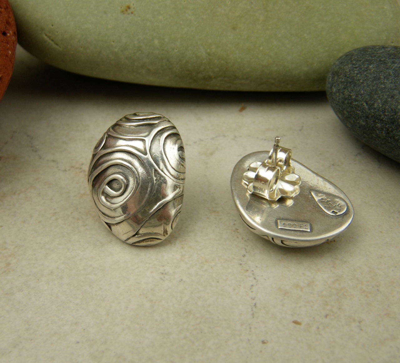 After I tumbled them, I oxidized them with liver of sulphur, and then buffed them on a muslin wheel. Of course I forgot to take a second batch of photos. Most of these beads are already in use. All of the earring sections are packed up and gone without photos. I was in kind of a hurry to get jewelry made and out to three galleries by today and tomorrow.