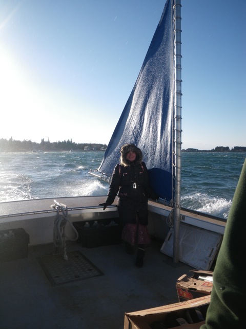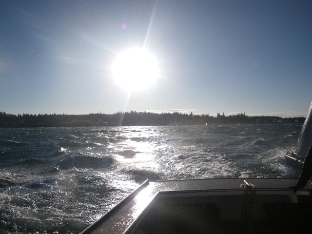 On Sunday, the day after Town Meeting, we got a windy ride off the island with Ted Spurling and a group of hardy souls who were headed off to church and for various other reasons. (There is no morning ferry on Sundays.) Thanks Ted!