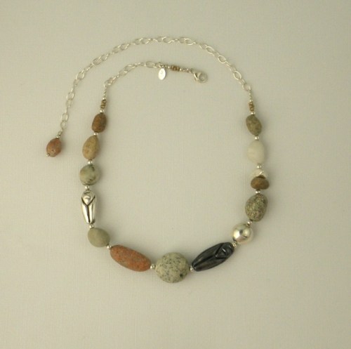 My design process looks like a jumble, but it eventually gets me where I am going. I rarely sketch these one of a kind necklaces. I just wait to see where the beads (hers, mine, and others) will lead me.