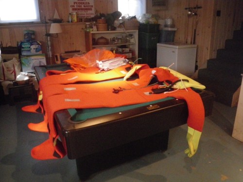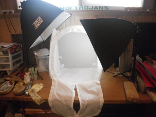 Sue’s scarabs are embedded halfway in plastocene, ready to have the two part mold material pressed on top.