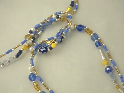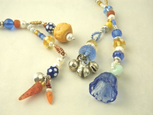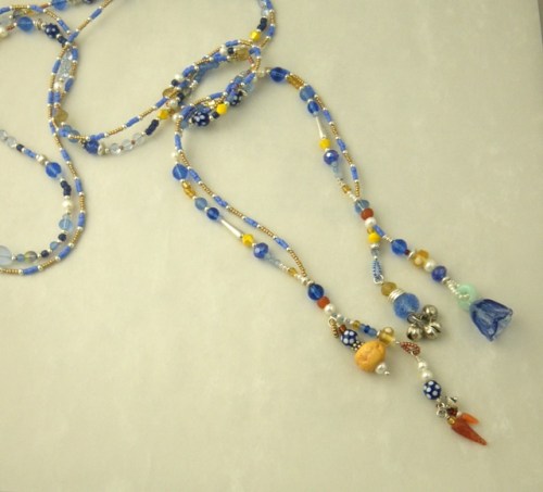 I made four different necklaces using each of Sue’s beads. In three of the necklaces I combined my scarabs with hers.