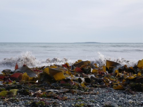 A bit of a swell had come up yesterday with the wind, stirring up kelp from under the water and tossing it up on the beach. Decomposing kelp can get kind of smelly, but with the wind direction, the warm air, and fresh kelp on the beach, the whole place smelled like an oyster tastes. Really fresh.