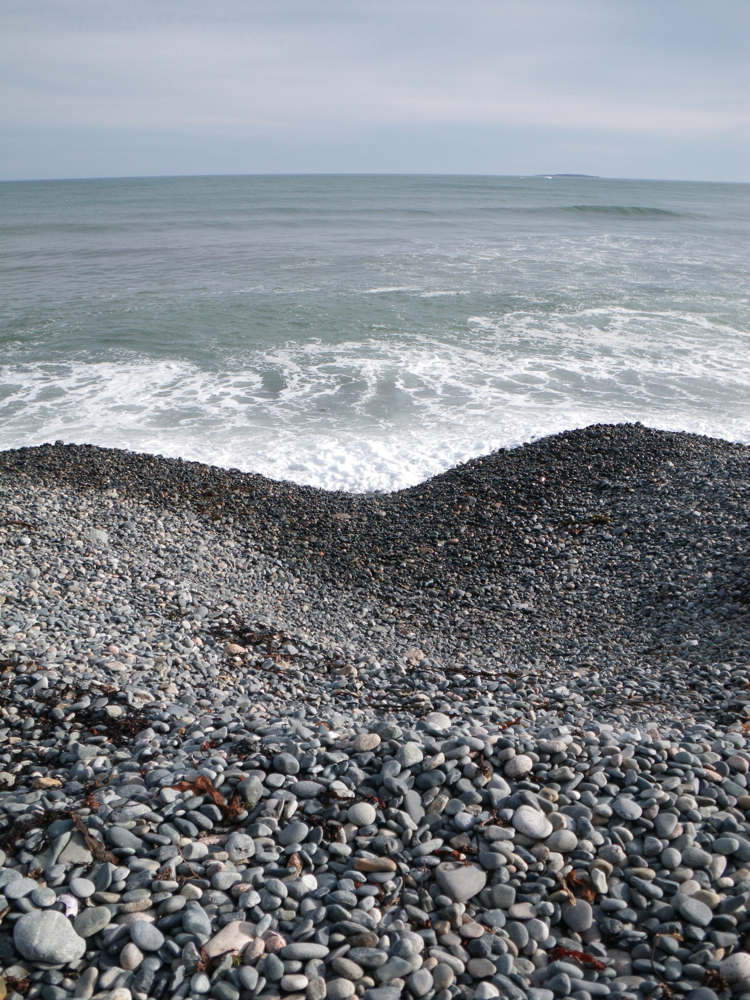 I walked home slowly, taking time to look for more little rocks to drill, hoping to find some sea glass or something else really unusual. I picked up a few things, but mostly just enjoyed being in the warm air and listening to the sound of the waves sucking at the rocks as they went out, then crashing gently as they came in.