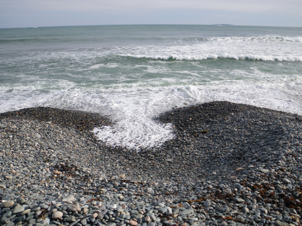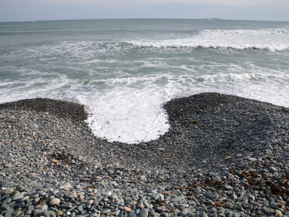 Today, the weather here was just gorgeous. I didn’t even realize it until later this afternoon. I spent a good part of the day drilling rocks for necklaces. It’s a job that takes time and sounds tedious, but I like it and I seem to go into a “zone” when I do it. I listened to a book on CD, and thought about how I would use the rocks and which ones I wanted to drill next. I lost track of time. When I came up for air, the wind had died down, the sun was out and the temperature was above 60º for the first time since last November. Bruce came in from lobstering and we took a walk. Once again Bruce took the road home and I went home via the beach. Just before we split up, we saw our first Great Blue Heron of the season. We watched it land in the top of a tree. (So funny to see such a large leggy bird in a spruce tree.)