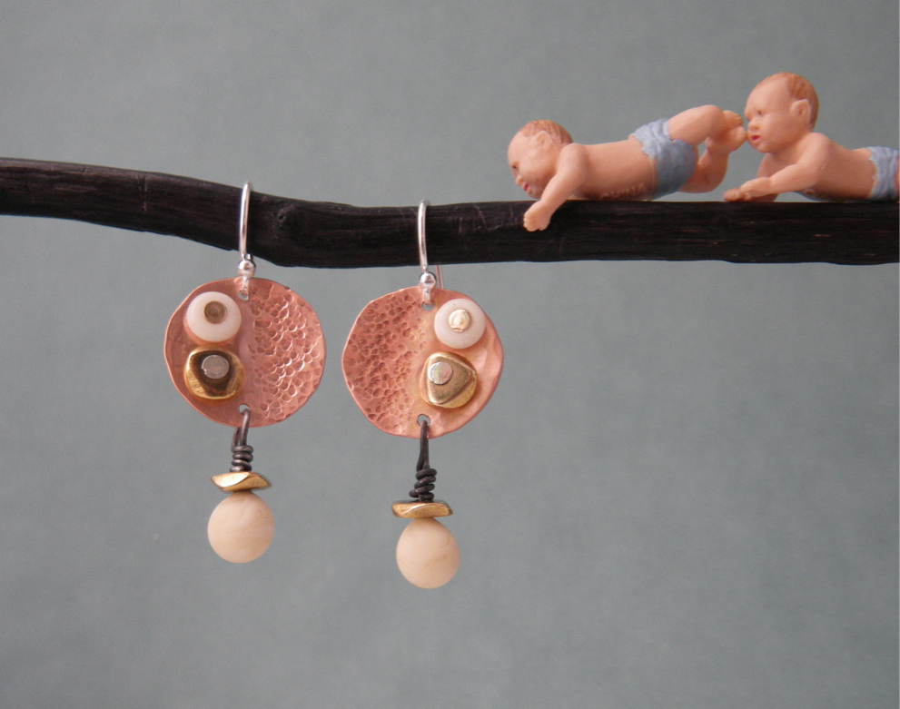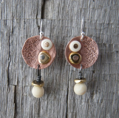 …not so much. I had a great morning in the studio, finishing some earrings with rivets, and some with copper pieces I had patinated last week. I spent the afternoon taking 118 photographs of 5 pairs of earrings I was planning to list on Etsy. I thought I was getting some good shots until I began to crop and edit them. Some were okay, but there weren’t 5 decent images of any one pair. Etsy will have to wait until next week, because I have something really exciting to do this weekend.