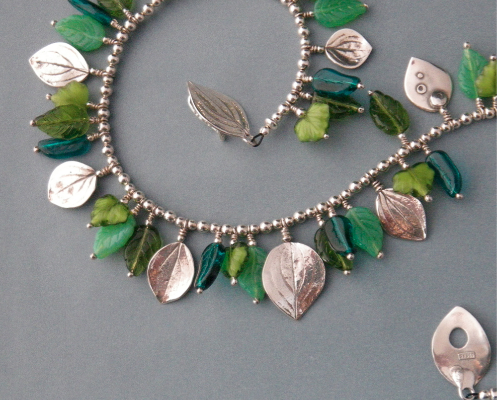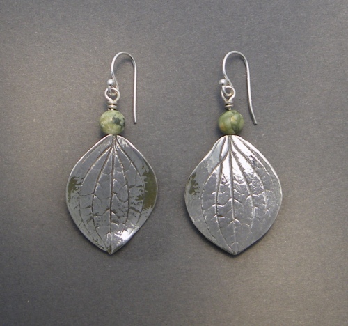 I am always looking at leaf textures and considering which ones to use with metal clay, but the leaf I use most often is that of the bunchberry dogwood. The back side has raised veins that recreate the lines of the front, when pressed into fresh soft clay. I guess you could say the bunchberry is my “go to” leaf.